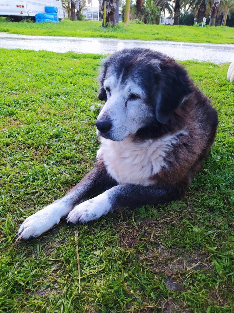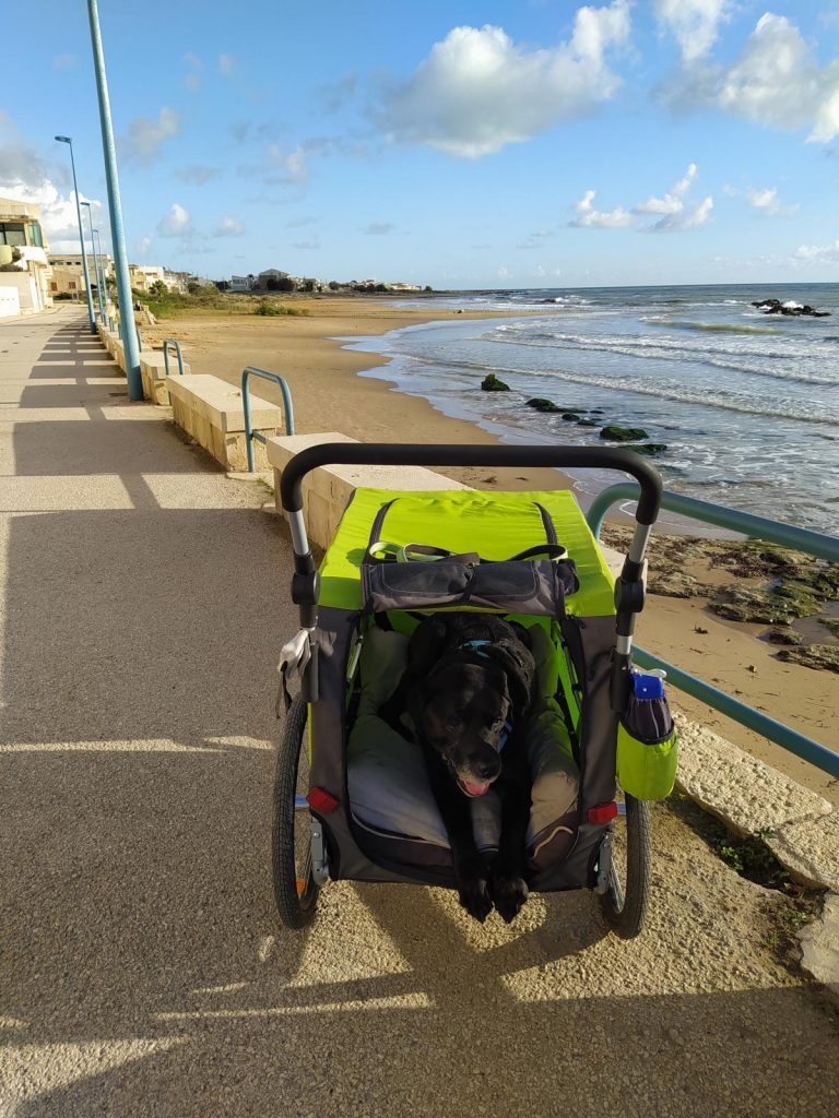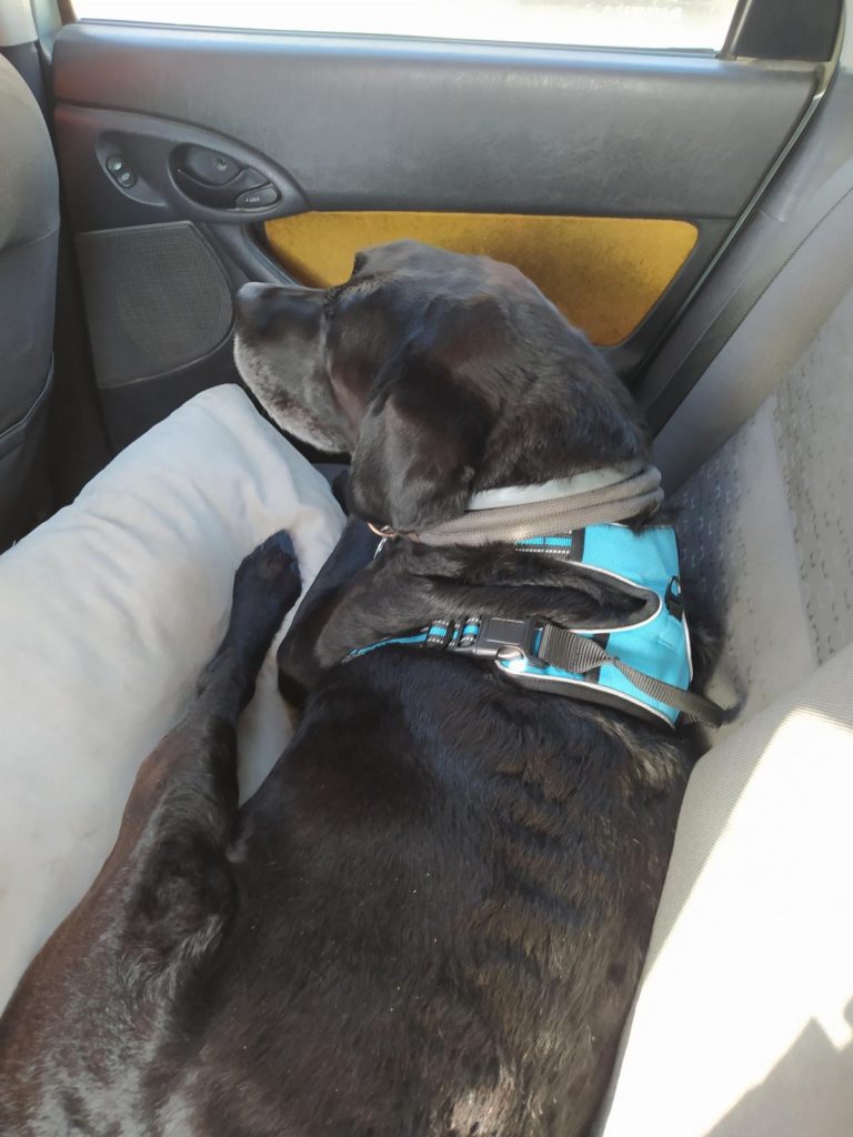 Zu Ole ein Wort. Er ist die Ruhe selbst, bei Katzen oder bei anderen Hunden, die gemeinsam bei uns im Lager sitzen, ob es Streuni war oder Sia, oder die Katzen, die um die Ecke schauen, er fühlt sich wohl und erlebt quasi seinen zweiten Frühling. Und sein Wagen ist sein zweites Zuhause.