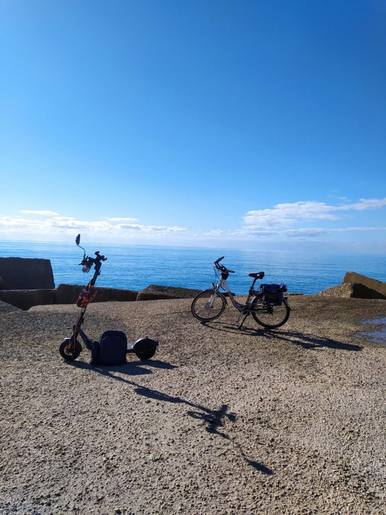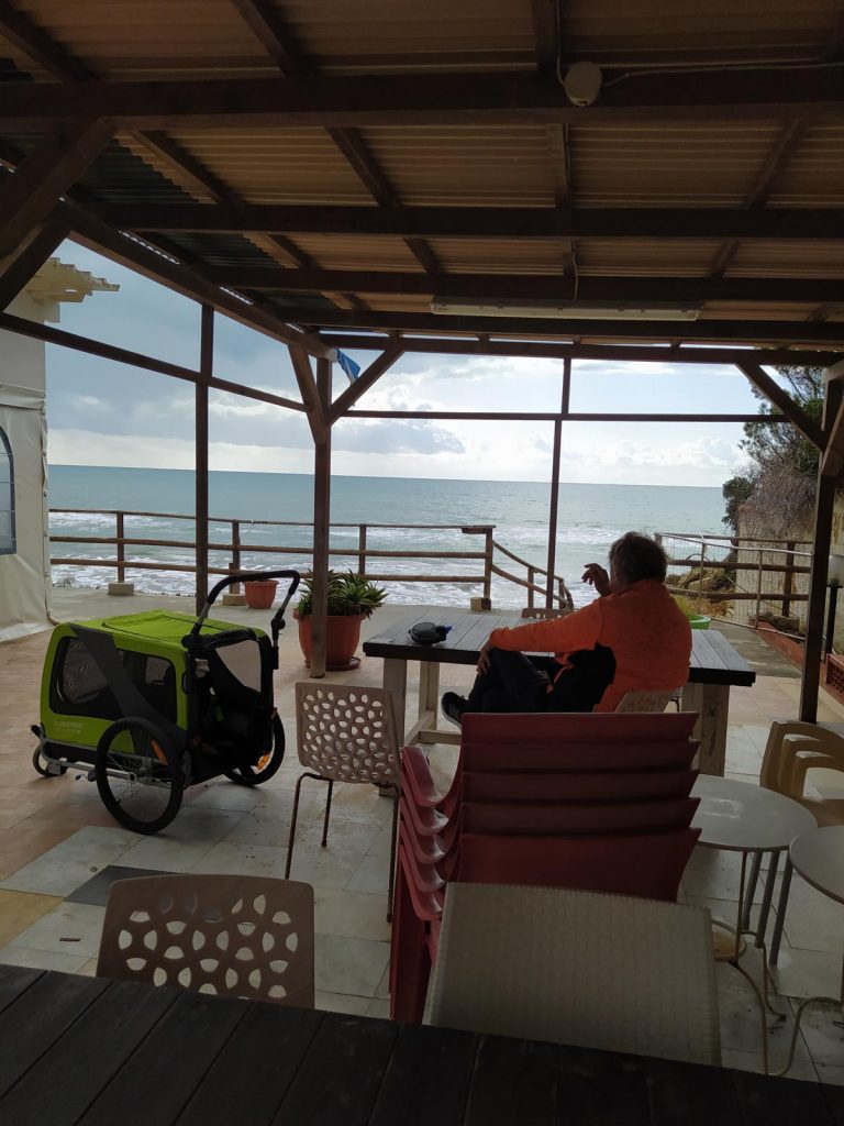 Man hörte tagsüber die Autobahn, nachts gings, ab 5 Uhr dunkel und Moskitos, also nix mehr mit draußen sitzen. Jetzt war klar 2-3 Tage, dann geht’s weiter. Am folgenden Tag wurde die direkte Umgebung mit Roller und Fahrrad inspiziert, auch der Strand, schön und menschenleer,