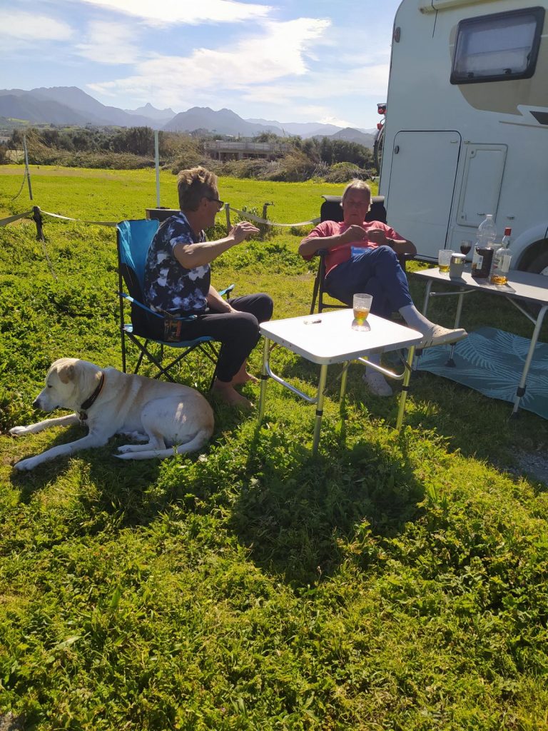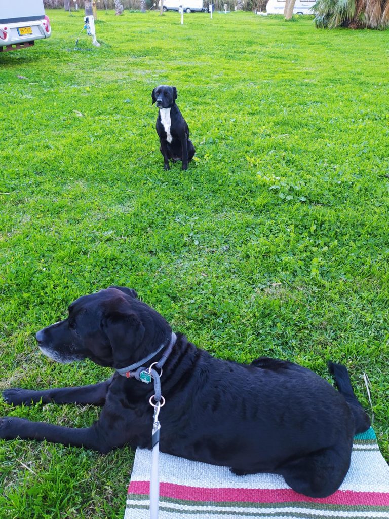 Die Entspanntheit hat schon auf die Hunde abgefärbt, unser direkter Nachbar hinterm angrenzenden Zaun und unsere beiden können auf 2 m aneinander ran und sind völlig relaxed