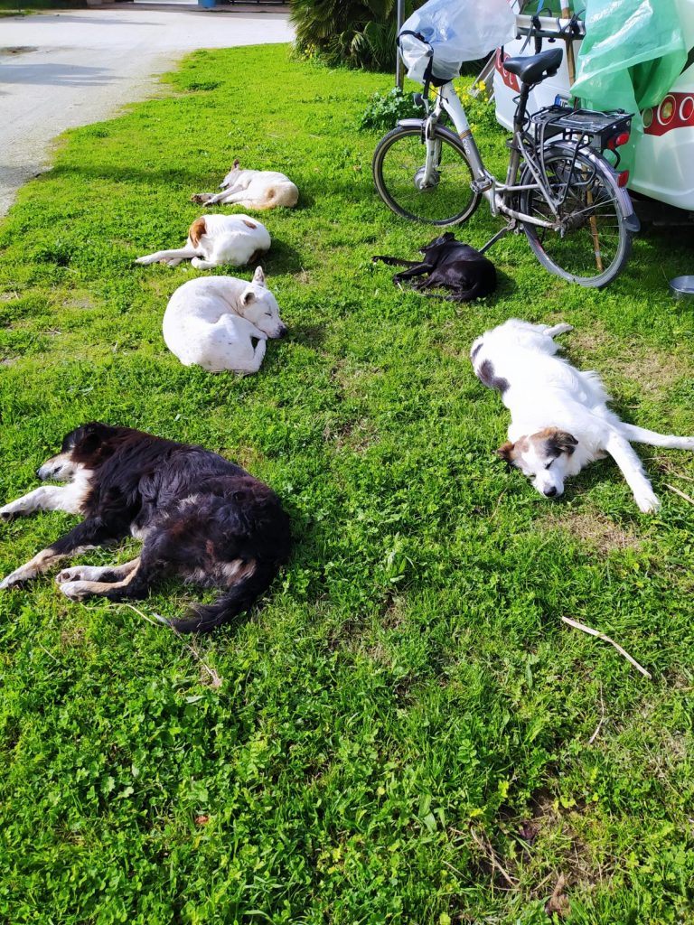 Der Mittwoch, der dritte Tag, war dann Begehung mit Sylvie und Hunden durch Stavros. Ein lehrreiches Training für Hunde und Mensch. An nahezu jeder Hauspforte oder Zaun standen wild bellende Hunde. Wilde Katzen flitzten an jeder Ecke herum. Und in der Stadt dann, dort wo die Cafeterias sind, die wilden Hunde. In den Wohngegenden eher selten, aber dort wo Essen verkostet wird oder in Touristencentren, wie Vergina (Geburtsort von Alexander dem Großen) 40 km weg, am Stausee, wo Parkplätze sind…