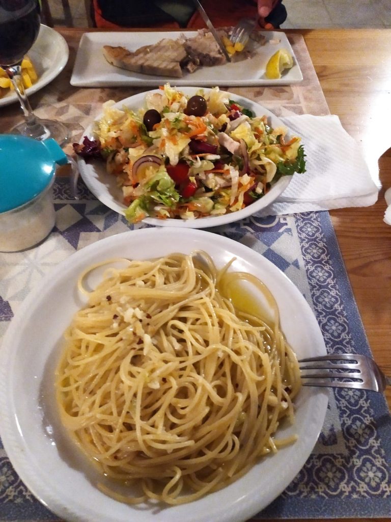 Preise von 7-9€, 1 l Karaffe Wein 10€ und was für eine Pizza bei Restaurant Spina. Und voll um 22 Uhr mit Einheimischen, aber da waren wir schon fertig. Hatte zuvor reserviert am Nachmittag, das war gut so.