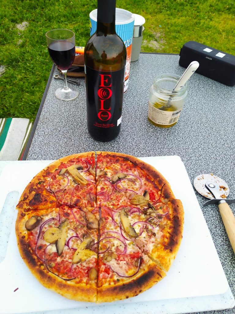 andere bessere Mole, doch da war kein Parkplatz, zu Fuß zu mühsam, und checkte auch unweit privaten Stellplatz. Mit 20€ etwas zu teuer, auch nur 2 Mobile Holländer und Slowene. Zum Wildstehen gehört eigtl. Pizzaessen, doch die Lokale, die offen hatten, wären etwas zu weit bzw. man hätte kein Zugriff auf das Mobil. Immer blödes Gefühl, wenn man wild steht. Ein paar Sachen zum Klauen haben wir ja schon dabei. Arbeitscomputer, E-Roller, meine tollen Ruten, Ecoflow, usw….