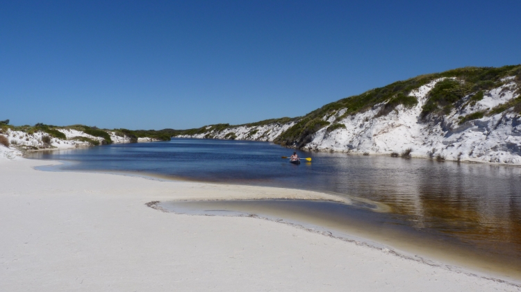 Aber wie gings weiter. Von Jurien Bay aus unserem luxuriösen Van ging es über eine bushcamping-Nacht unmittelbar vor Lancelin im Landesinneren mit großem Feuer dann weiter anderntags an der Küste an allen kleinen Orten vorbei bis nach Guilderton auf den Caravanpark. Eine Empfehlung von Freunden, Ken und Jean aus Mandurah, und dieser ist wirklich einen Halt wert. Toll gelegen am rivemouth, auch gut zum Kayakfahren (leider ja nicht mehr da), zum Breamfischen, aber keine Lust mehr, aber wir hatten auch so noch 2 schöne sonnige Tage an der Beach. Guter Caravanpark mit kitchen und nix los trotz Schulferien.