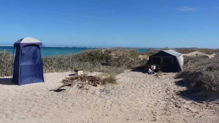 Unseren defekten bzw. nicht zu gebrauchenden Generator nahmen sie wieder zurück. Ok, damit hatten wir wieder mehr Platz im Auto. Von dort aus ging es weiter zum Ningaloo Homestead und deren Station. Dies war damals unse TOp-Spot und leider diesmal eher enttäuschend. Lag es nun an der hohen Erwartung oder daran, daß sich einges geändert hat. Mittlerweile chargt er 40$ die Woche, das ist nach wie vor günstig, vermietet aber chemische Toiletten für 35$ (Pflicht!!!), die man dann einfach in der Erde in einem gebuddeltem Loch entsorgt. Was für ein Quatsch und Business. Leider hat er auch alle Wege per Gatter abgeschlossen, für die man dann jeweils einen Schlüssel bekommt. Der passt dann aber nur zu dem gebuchten Camp. Heißt also, man ist an seiner Bucht quasi eingeschlossen. Riesenscheiß!. Dazu kommt daß es echt busy war, also an Lefroy South waren über 300 Leute, daher waren wir in Point Billy, das Camp nebenan. Wir fingen zwar unseren Fisch und Squid für das abendliche Dinner,
